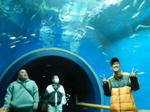 琵琶湖博物館に着くと「小学校の時にいったことある!」「ヘルパーさんに連れてきてもらった!」と昔の記憶を呼び覚ましたりと入館前から大騒ぎでした。