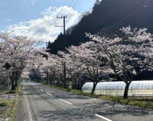 七彩の風に来る途中に桜並木があります。